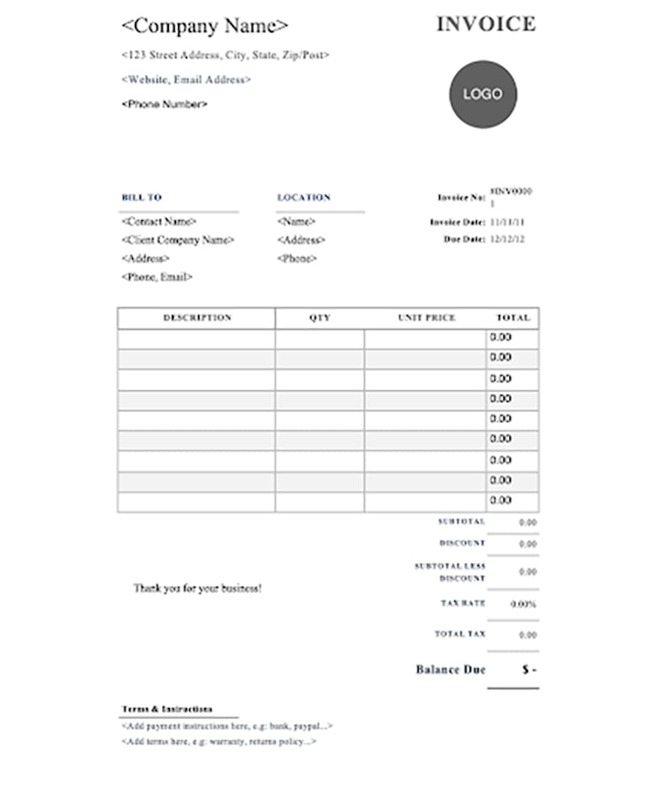 Another option is to use an invoice template made specifically for construction. The only drawback to these is that they can sometimes leave off important information.