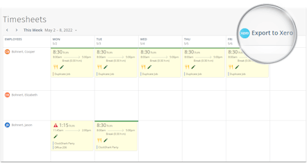 You know those spot-on, dead-accurate employee timesheets ClockShark collects? You can send them directly into Xero with just a few clicks. Wait no more for someone to manually type in weekly time cards before processing payroll. Just send over the time when you’re ready.