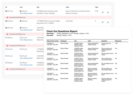 Get important information from your team in the field when they clock out, and receive timely notifications of unexpected responses