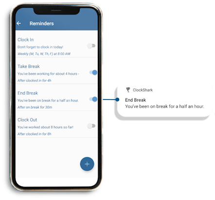 Turn specific reminders on or off. You can also customize how your reminders are sent, including whether they are sent via email or mobile push notification. Whether your crews work at the same time every day or move around to different sites, ClockShark has a set of reminders that work the way you work.